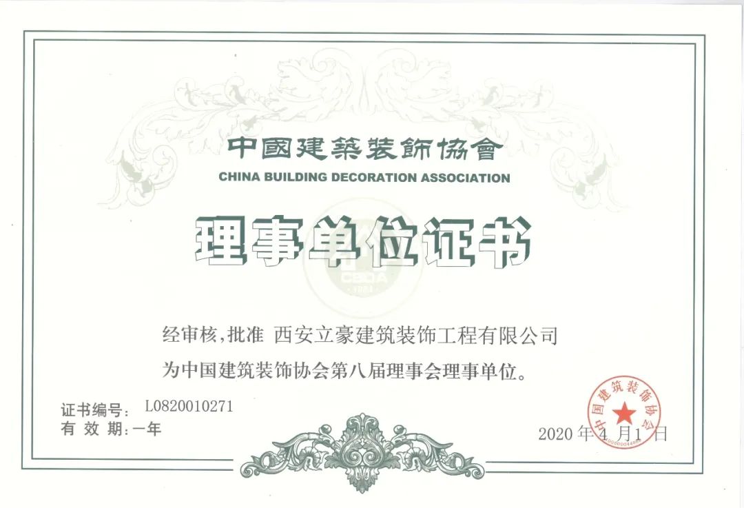立豪集團(tuán)榮升中國(guó)建筑裝飾協(xié)會(huì)理事單位